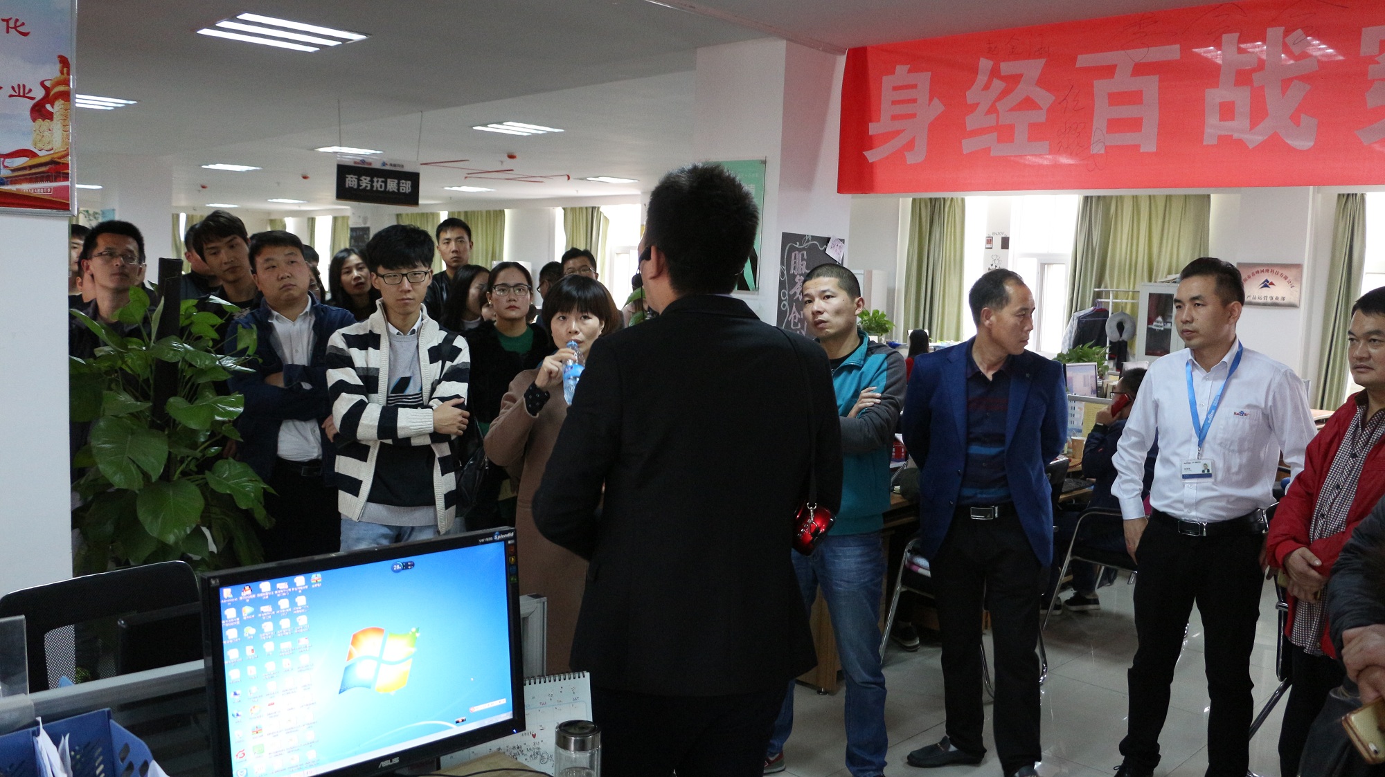 各位企業(yè)家到齊后,主持人董祥先生帶領大家參觀公司,并詳細介紹了青峰網(wǎng)絡的企業(yè)文化以及公司各個部門的職責。