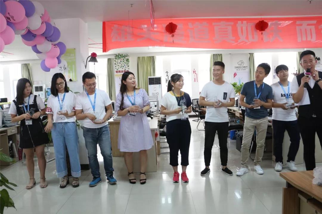 由在青峰11年的老員工給在青峰10年的員工送上生日蛋糕