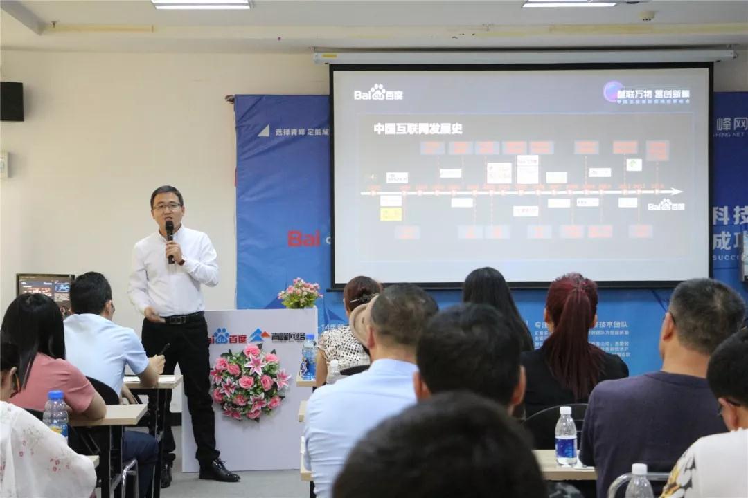 洛陽市青峰網(wǎng)絡(luò)科技有限公司百度推廣運(yùn)營總監(jiān)張浩陽先生發(fā)表主題演講,以一張中國互聯(lián)網(wǎng)發(fā)展史的圖片切入,講解了以智能技術(shù)為核心的新形勢(shì)下,洛陽的企業(yè)家究竟怎樣讓自己的品牌迅速突出,怎么去選擇性價(jià)比更高的商業(yè)解決方案來助力自己的成功。