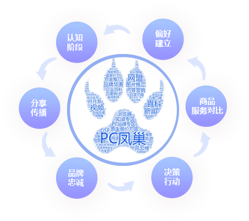 企業(yè):通過全網(wǎng)產(chǎn)品根據(jù)網(wǎng)民虛擬人物畫像,追蹤網(wǎng)民,將企業(yè)產(chǎn)品的優(yōu)勢(shì)和特點(diǎn),呈現(xiàn)在網(wǎng)民面前,成為備選對(duì)象